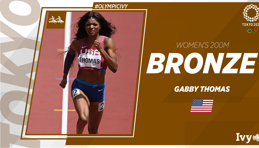 With a time of 21.87 in the 200m, Harvard Track's Gabrielle Thomas brings home a bronze medal for Team USA.